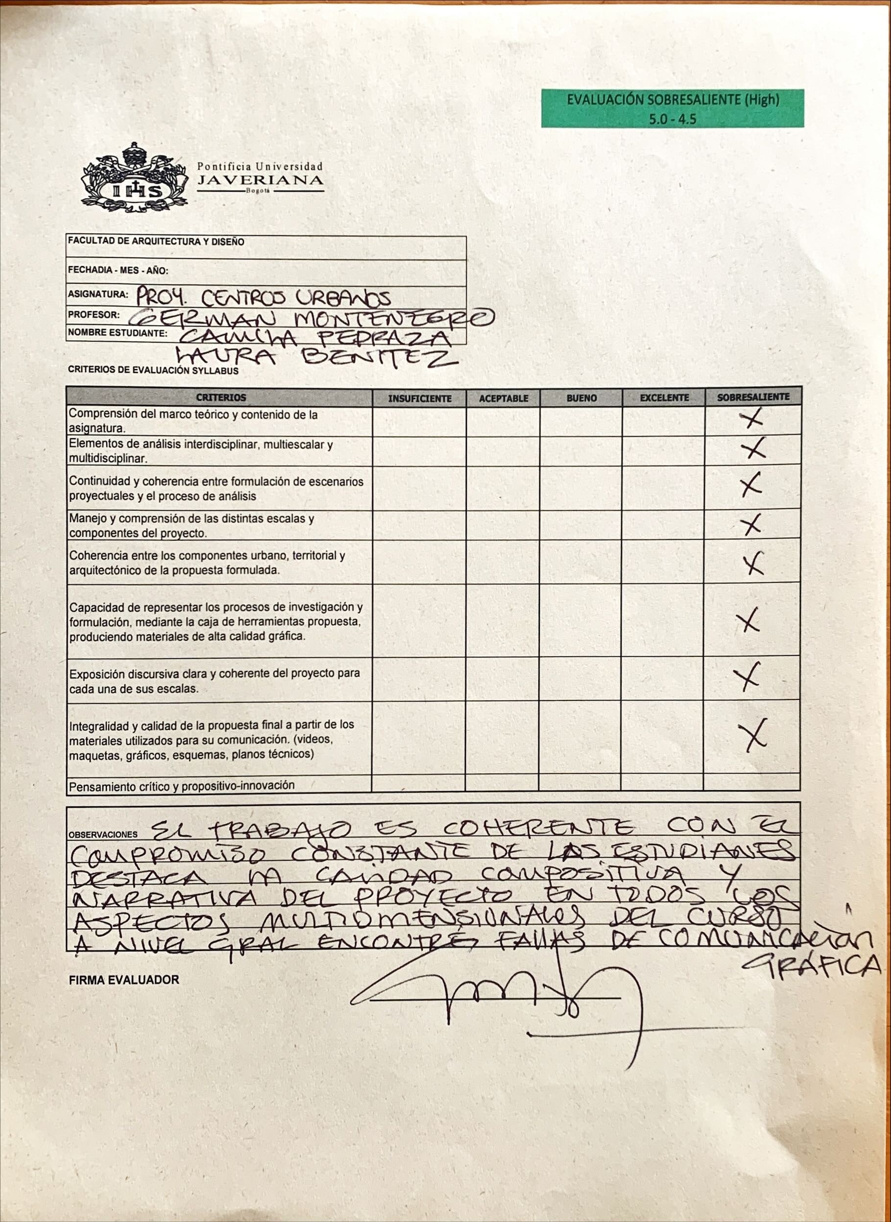 The academic process is embedded within the perspective of getting students to recognize, to consider and to project from the country and its regions needs, as part of consolidating the ethical and service spirit of future Javeriana architects.